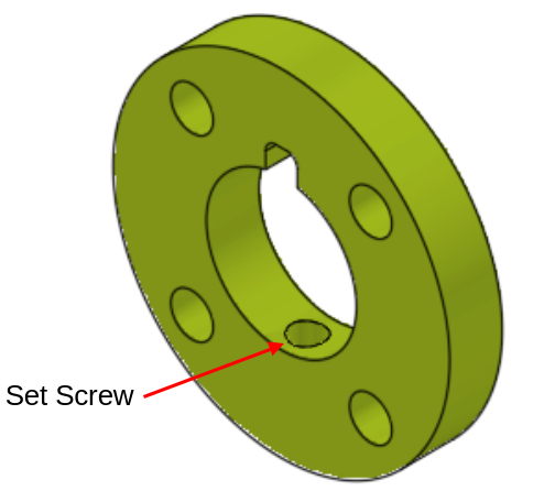 A screw installed in the sprocket hub that tightens against the shaft to help prevent movement or slipping.